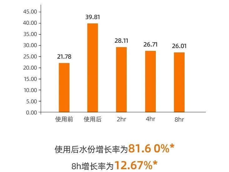 在使用小藍(lán)帽后皮膚水分增長(zhǎng)了81%,而且8小時(shí)后仍了12.67%的水分。