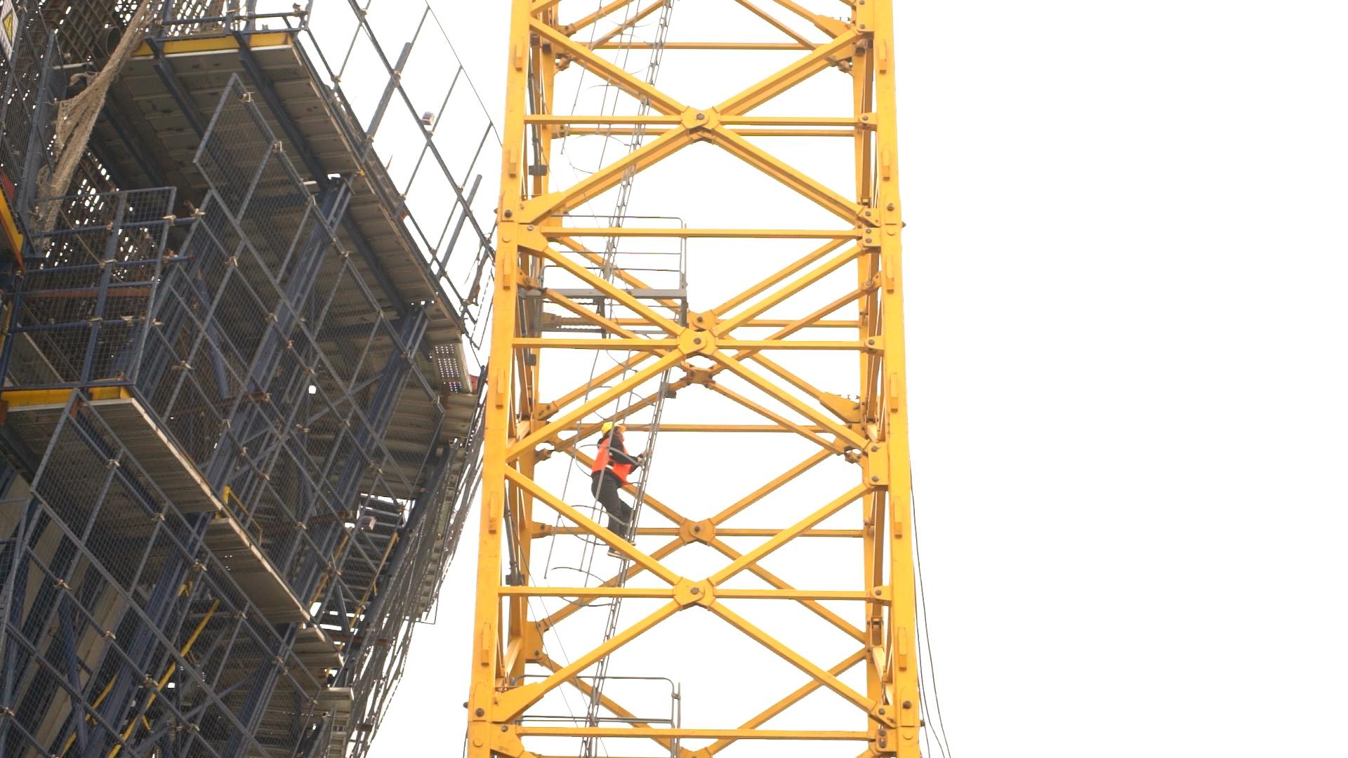 塔吊的高度隨著建筑高度而調(diào)整。塔吊司機(jī)除了要求身體沒(méi)有重大疾病,還得雙手、雙臂有力。在成福珍開過(guò)的塔吊中,高度在100米以上的塔吊才會(huì)安裝電梯,100米以下的只能徒手攀爬。