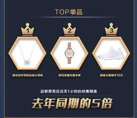 從各個品類來看,母嬰護膚品牌艾維諾10分鐘售出的面霜可供一個寶寶不間斷使用5年時間;美妝會場里全天售出的防曬霜數量可供10萬人使用一年;進口保健自營類商品銷售額同比去年增長675%;進口時尚品類經典品牌蒂芙尼當天1小時的銷售額是去年同期的5倍;個護會場售出的比那氏總量相連可以繞882個足球場;受時尚女性喜愛的品牌戴森全天的銷售額是去年同期的5倍;食品類目全天售出的巴黎水平疊起來高度相當于22個哈利法塔;進口寵物品牌美士當天售出的貓糧可以喂養(yǎng)一直成年貓咪吃12年。