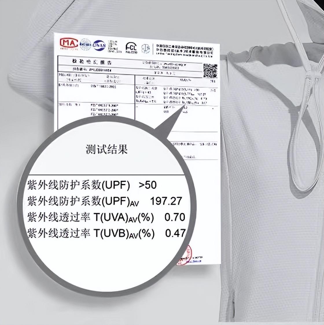 1.根據(jù)我國《紡織品防紫外線性能的評定》中規(guī)定:防曬衣必須同時(shí)滿足以下標(biāo)準(zhǔn):產(chǎn)品的全紫外線防護(hù)系數(shù)(UPF)大于40(該指數(shù)包括UVA和UVB的吸收反射情況)而且長波紫外線(UVA)透過率小于5%。朋友們在購買防曬衣時(shí),應(yīng)當(dāng)注意標(biāo)簽上的UPF值,UPF值越高,說明紫外線的防護(hù)果越好。(中波紫外線(UVB)的評價(jià)指標(biāo)更多用在防曬霜上,比如較高級別的30+等防護(hù))