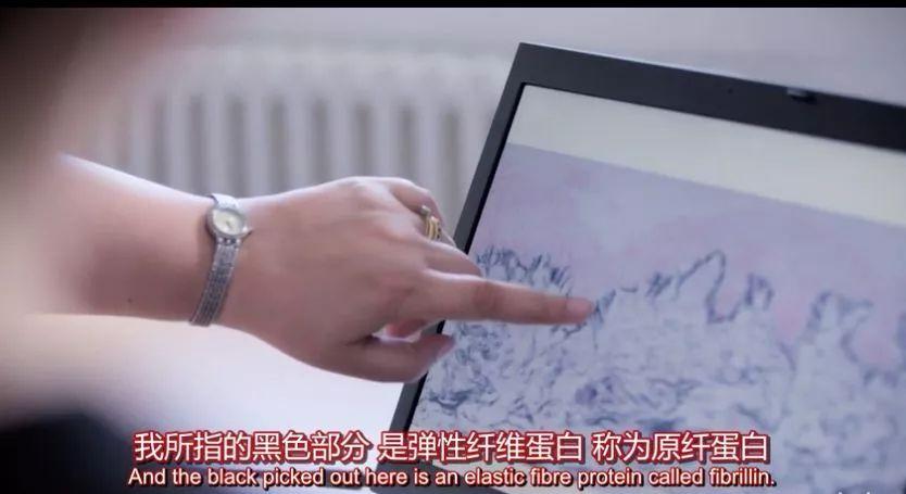 據(jù)片中教授所說(shuō),原纖蛋白,是皮膚外部的支撐,能保持肌膚緊致。而當(dāng)皮膚長(zhǎng)時(shí)間暴曬時(shí),原纖蛋白被破壞,肌膚失去支撐,就會(huì)產(chǎn)生皺紋。