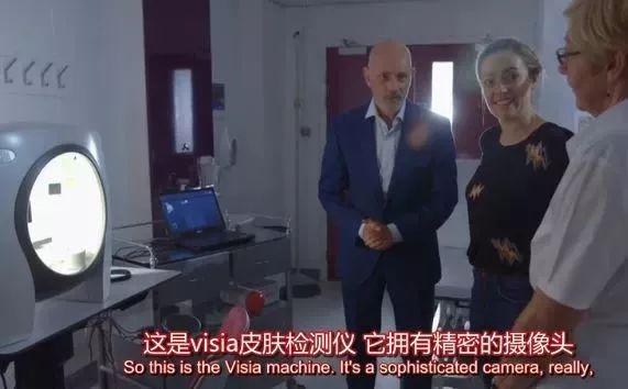 為了探尋可以防衰老的秘密,Cherry 找到了英國(guó)皮膚科醫(yī)生,在醫(yī)院用皮膚測(cè)試儀測(cè)試了肌膚狀態(tài)。