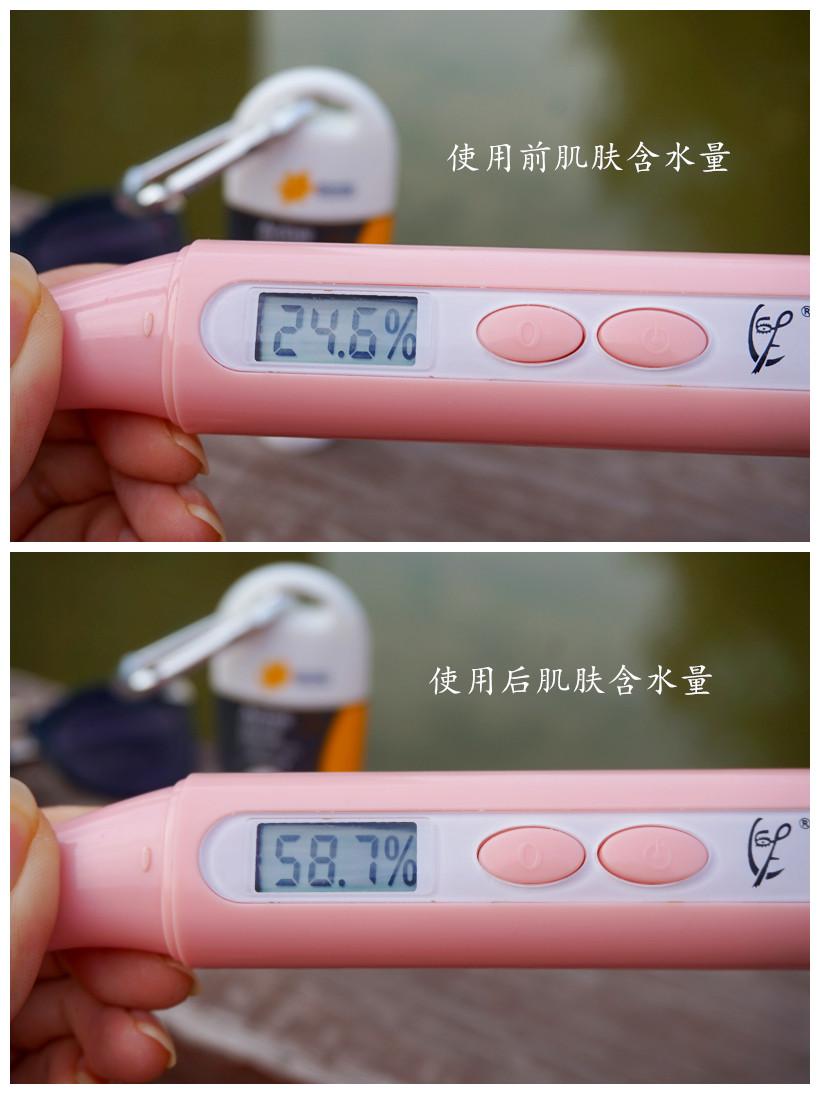 所有的護膚品中,補水是基礎也是重要的,來看下使用防曬霜后的含水量,飆升了兩倍多的數(shù)值,證明了它的補水力,這保濕果堪比補水精華了。