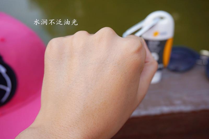 運動后大量的流汗,如果防曬霜的抗水性不好,那就等于白涂了,照樣曬黑曬傷!在使用過防曬霜的手背肌膚噴灑上補水噴霧,從上滑落的水珠沒有變渾濁,還是清澈透亮的,說明這款運動戶外防曬霜的抗水性也是很不錯的, 戶外玩水也毫無壓力了。