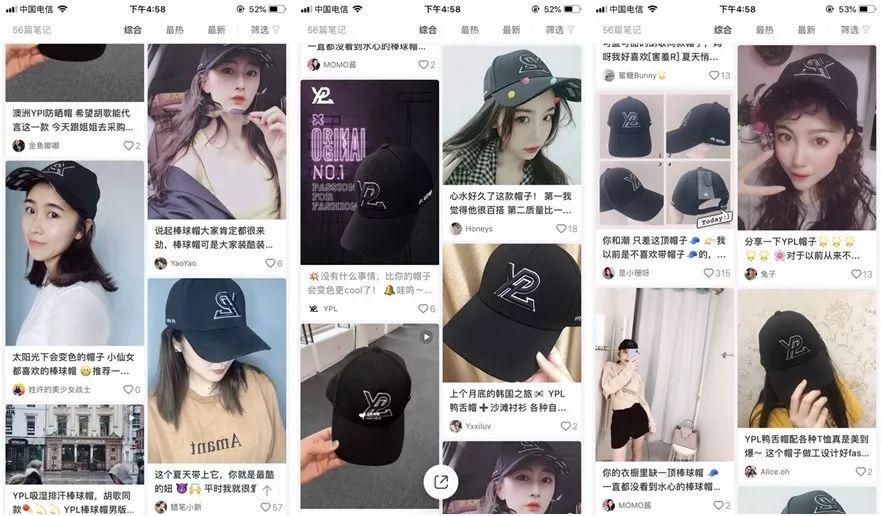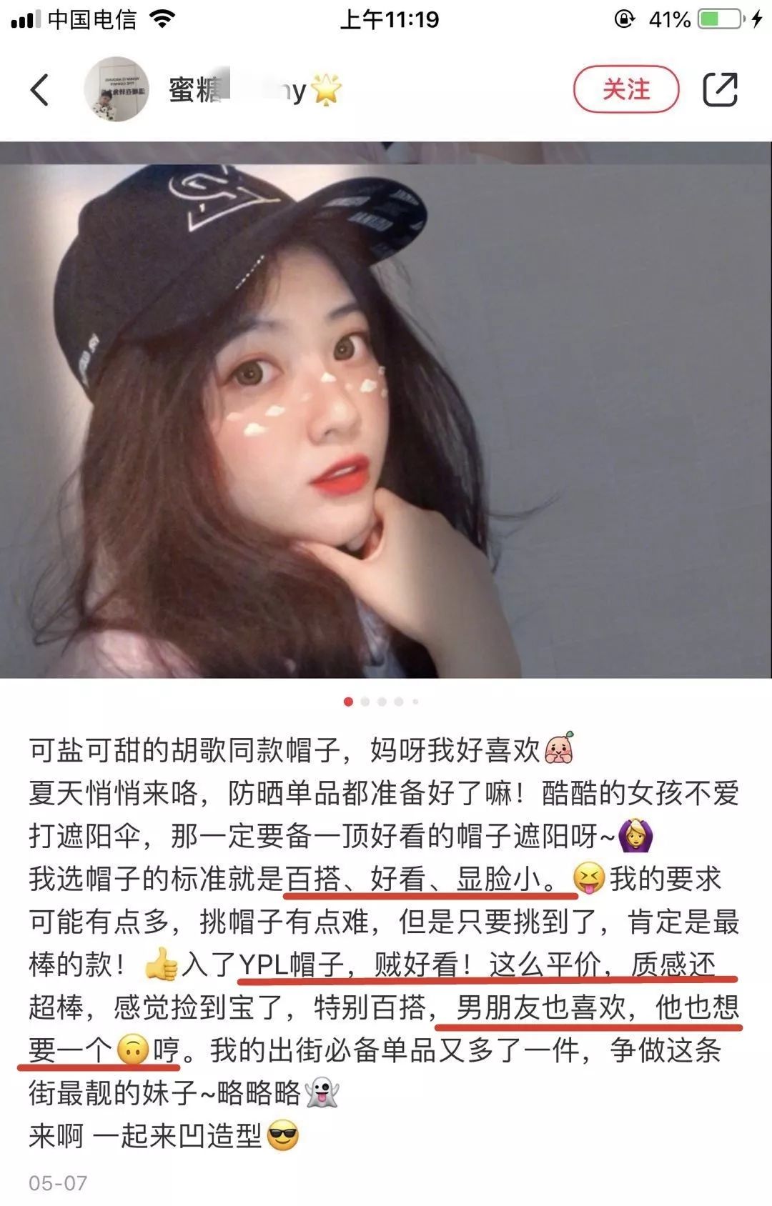 小紅書也有很多小姐姐在曬YPL的棒球帽,戴上賊好看,男朋友都很喜歡。