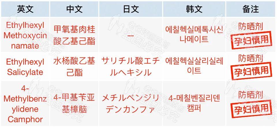這里列了幾個(gè)孕婦慎用的防曬劑,準(zhǔn)媽媽們選購防曬產(chǎn)品時(shí)可作為參考。