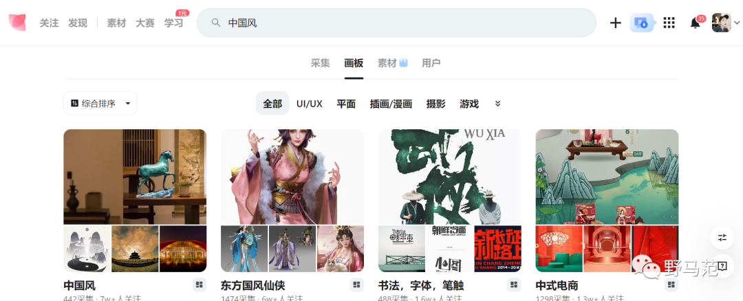 推薦采用的方法是:在花瓣網(wǎng)搜索風(fēng)格關(guān)鍵詞的畫板,就可以找到多的靈感參考,如下圖: