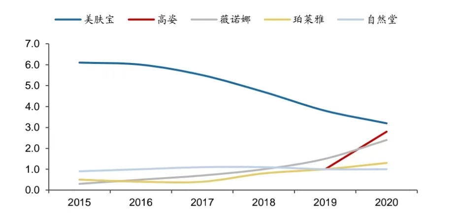 在2000年前后誕生的國(guó)產(chǎn)品牌中,美膚寶和佰草集、相宜本草都主攻中藥護(hù)膚領(lǐng)域,站在同一梯隊(duì)。立足本草護(hù)膚理念和傳統(tǒng)中藥文化,國(guó)貨品牌們開(kāi)始直面與寶潔、資生堂、歐萊雅等國(guó)際巨頭的競(jìng)爭(zhēng)。