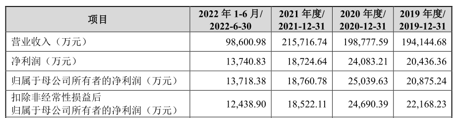 在營(yíng)收上,環(huán)亞科技已經(jīng)突破20億元。2019年和2020年,環(huán)亞科技的營(yíng)收分別為19.41億元和19.88億元,到2021年增至21.57億元,同比增長(zhǎng)9.75%。2022年上半年,環(huán)亞科技的營(yíng)收9.86億,凈利潤(rùn)為1.37億元。