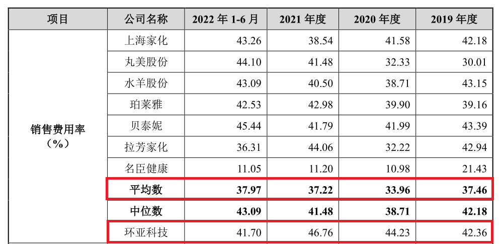這些鋪天蓋地的廣告投放,讓環(huán)亞科技的營(yíng)銷支出大幅提升。2019年,環(huán)亞科技的銷售費(fèi)用為8.2億元,到2021年增至10.1億元,銷售費(fèi)用率從42.3%提升到46.75%,高于同行業(yè)上市公司平均水平。