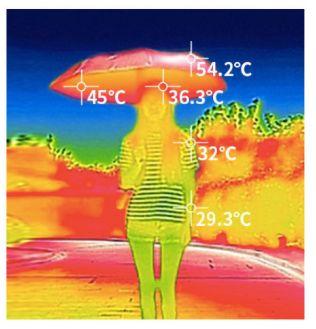 L.R.C.涂層運用于傘面阻擋熱量能力極強。在專業(yè)的熱感儀實驗中,我們可以清晰地看到雙層傘布的卓越隔熱果,有降低熱量傳導(dǎo),遮熱果可以讓溫度驟降12攝氏度,傘內(nèi)傘外體感簡直是兩個世界。