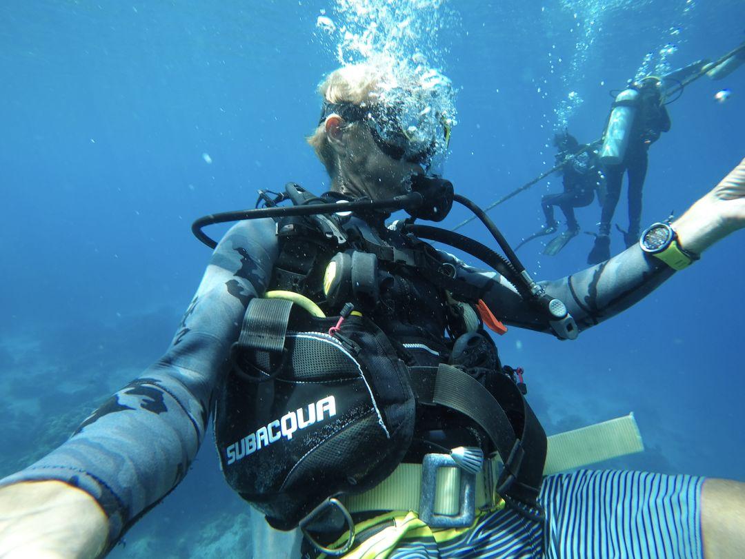 這個(gè)動作對于潛水小白以及不會游泳的人來說還蠻慌的。但是不用擔(dān)心,一下海人就會浮起來,而且還有教練與船員在的保護(hù)你。反正,放心跳吧,記得姿勢要美。
