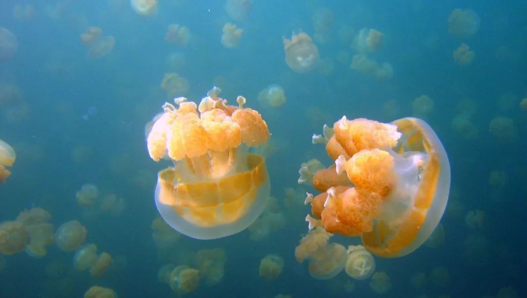坐在小舟上,你會完全想不到水下有那么多水母在蹦迪。這時(shí)你可以拿著浮潛設(shè)備,把腦袋和身體探進(jìn)水里,友善地與“小果凍”們打招呼。