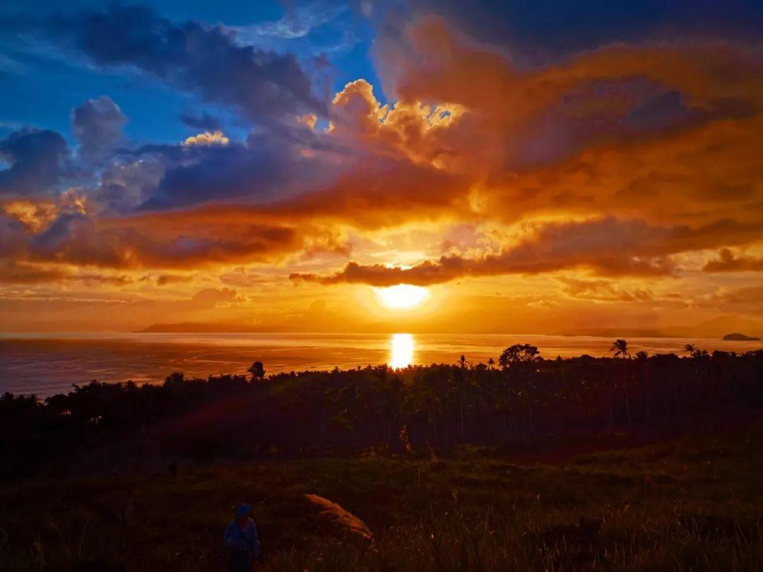 從岸邊出發(fā),大概走十幾分鐘,我們就攀登到了山頂。正好是傍晚時(shí)分,大家還在山頂看了一場一輩子都難忘的日落。