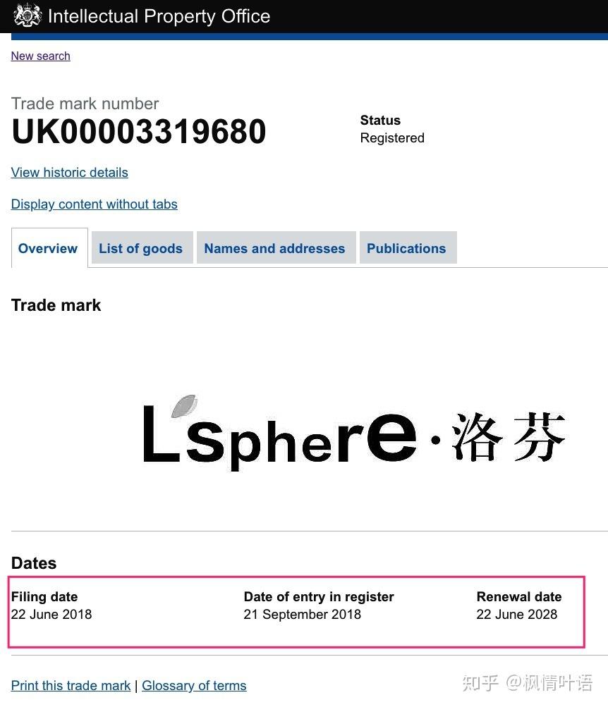 據百度百科顯示,LSphere(倫敦圈層),于1989年誕生于英國,屬于洛芬國際控股集團,商標名稱L’SPHERE,申請日期2010年06月03日,2011年在國內注冊成功,而在英國注冊成功則是2018年。