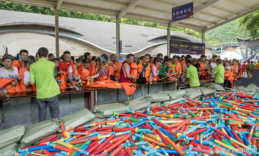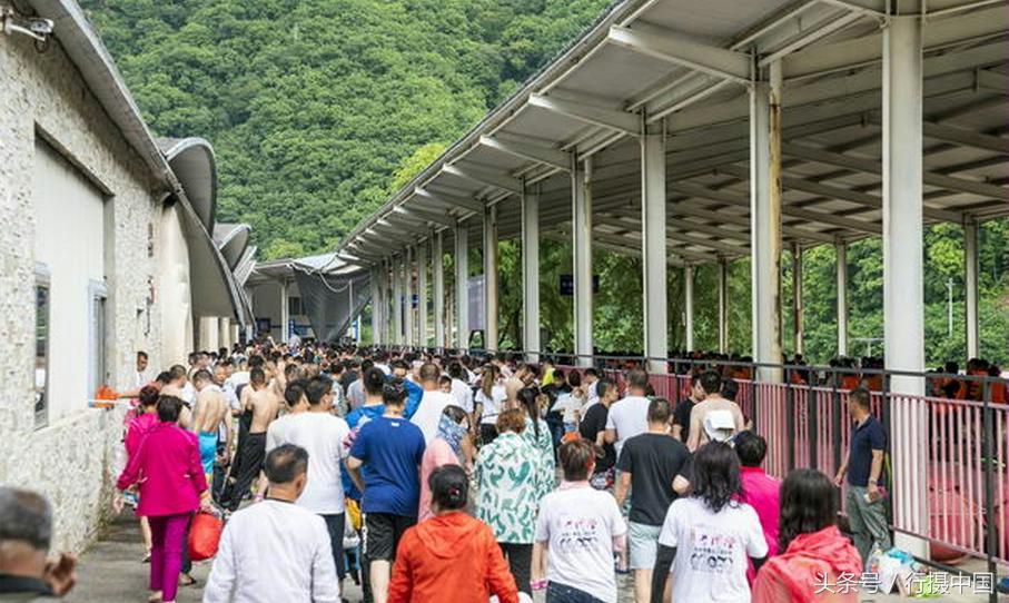 乘景區(qū)導站車,從綜合服務區(qū)駛離,經過七八分鐘時間就會來到起點服務區(qū)。路上會經過旅行社服務區(qū),那里有來自不同地區(qū)旅行社組織來漂流的游客,他們先乘坐旅行社大巴,在指揮中心的統(tǒng)一指令下按規(guī)定時間到達起點服務區(qū)。