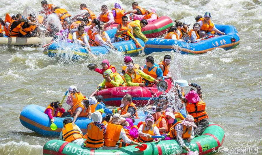 景區(qū)提供的每條皮筏可乘坐8—10人,不管認識不認識,同坐一條“戰(zhàn)”船就是親密無間的戰(zhàn)友。水盆潑,水槍射,不分東南西北,快樂、刺激的體驗從入水的一剎那被激發(fā),無論男女老少與身份高低,到了水中大家都變成了孩子,快樂地朝著河中漂流的人們發(fā)起一輪輪水攻。悄悄結盟、岸邊潛伏、突然襲擊、目標一致成了漂流戰(zhàn)斗法寶,只要兩船或多船相遇,那真是一言不合就開“打”啊。咱玩兒歸玩兒,潑水歸潑水,到了紅河漂流,誰都不帶急眼的。所以,歌聲、笑聲、盡情撒歡是大家愛上紅河漂流的理由之一。
