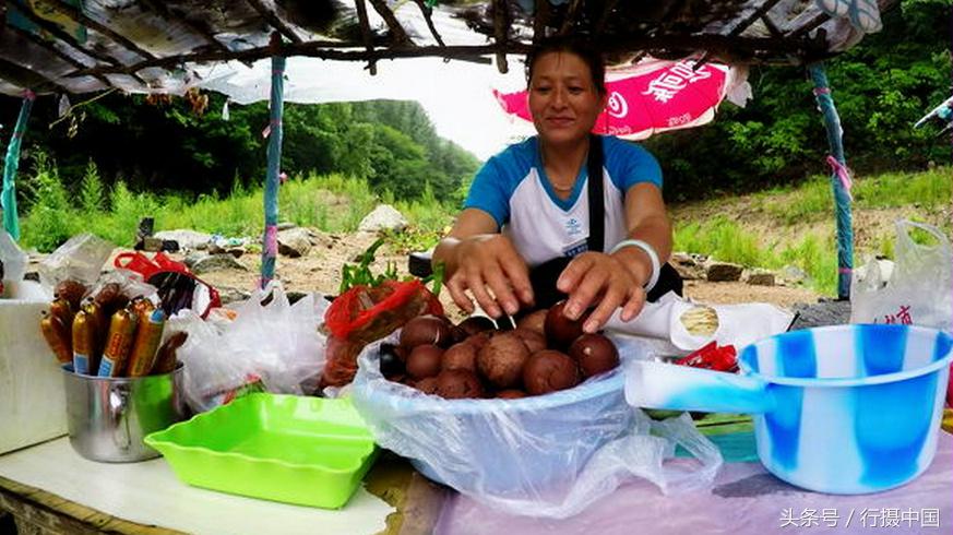不光打水仗是門學問,就連漂流也是項專業(yè)性極強的工作。漂好了,你可以順水而下,不觸壁、不擱淺,勇敢的是在激流中浪大的地方下落,顛簸、刺激的感受全在臉上。漂流打水仗是個體力活,你會發(fā)現(xiàn)很快就餓了。不要擔心,河道每隔幾公里的淺灘上就會有附近農民擺設的攤位,他們負責把你的船拉上岸,為漂流游客提供卷餅、煎餅、茶蛋、黃瓜、方便面等吃食。這也是紅河漂流為周邊5個村,92戶、160多人免費提供的攤位,增加他們的經濟收入。