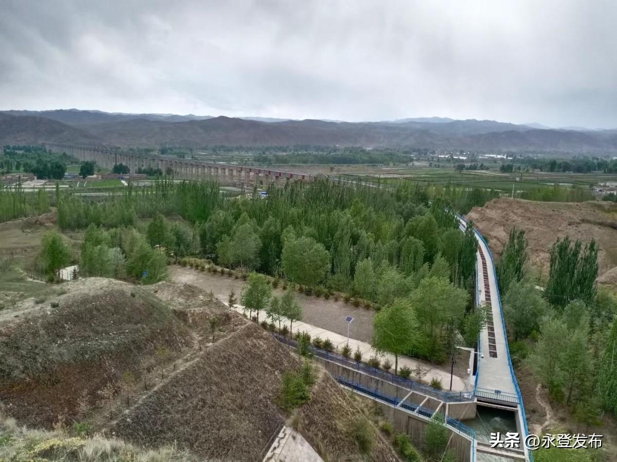 莊浪河渡槽。這是工程宏偉的建筑物之一,也是壯觀的景點(diǎn)之一。渡槽總長(zhǎng)2194.8米,大凈空高度43米,共有76跨。無(wú)論其建筑規(guī)?;蛘咻斔芰Γ加衼喼薅刹壑拿雷u(yù)。渡槽橫跨莊浪河、蘭新鐵路、312國(guó)道、漢長(zhǎng)城和明長(zhǎng)城,形成了“六龍聚匯”的壯麗景觀。在同一空間,飽涵了兩千余年的歷史時(shí)空,實(shí)屬罕見(jiàn)。