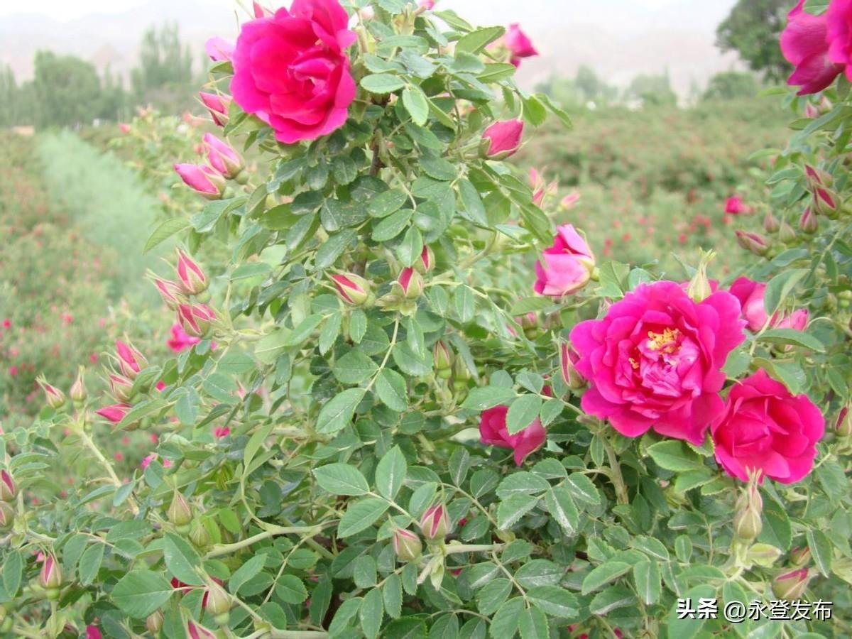 玫香花海。苦水玫瑰滿川競(jìng)秀,花紅如海,芬芳四溢,瑰麗清香,花之?huà)晒?,益養(yǎng)身心,清怡神性,美化生活,以“香型獨(dú)特、品種純正、含油量高”被人們稱(chēng)之為“天下第一香”。已有170多年的人工栽培歷史,是甘肅省的特色產(chǎn)業(yè)之一,產(chǎn)量占到全國(guó)的70%,榮獲地理標(biāo)志,經(jīng)過(guò)開(kāi)發(fā)成為保健養(yǎng)生的知名品牌。