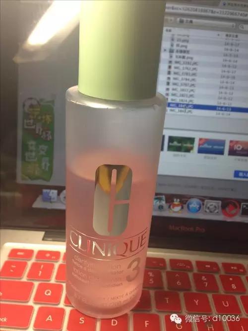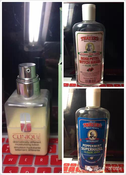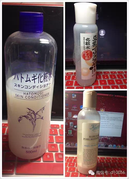 第一步導(dǎo)出:擼主晚上用的倩碧3號(hào)水,早上用的Labo Labo。這一步一定要用擦拭型的水,目的是帶走廢老角質(zhì),促進(jìn)后面護(hù)膚品的吸收。