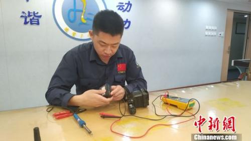 遠望7號電工馬洪宇幫記者修好了電池。 溫孟馨 攝
