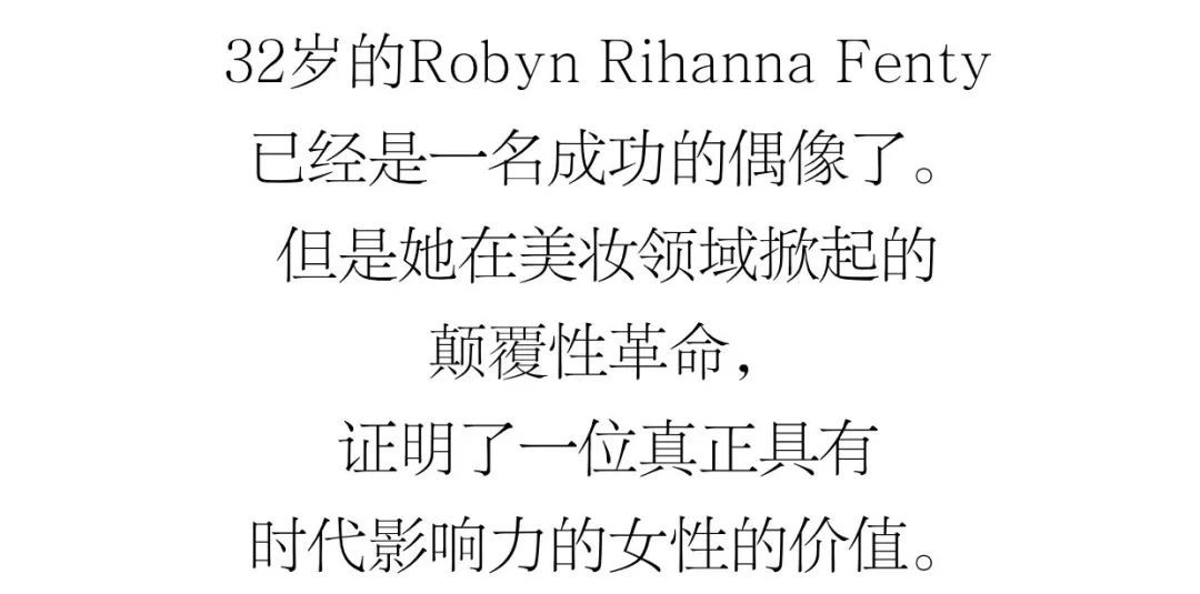 Rihanna從不受限。她在護(hù)膚領(lǐng)域的成功證明了一種更為內(nèi)在的精神:不再是關(guān)于粉絲如何接受她的一切,而更多的是Rihanna正在用這樣一種方式去擁抱她的粉絲們。