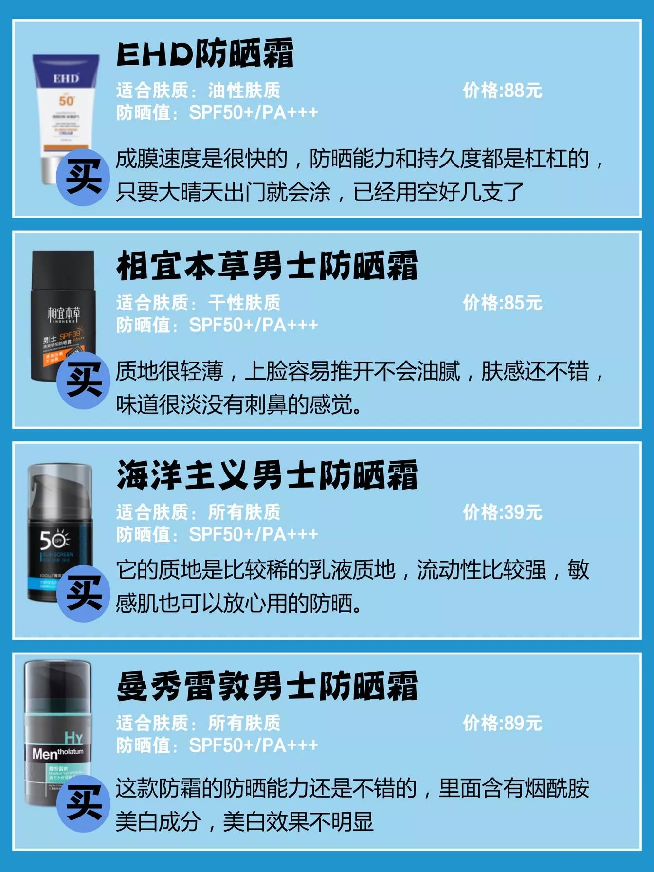 拓展知識(shí):不美白男士防曬霜推薦品牌