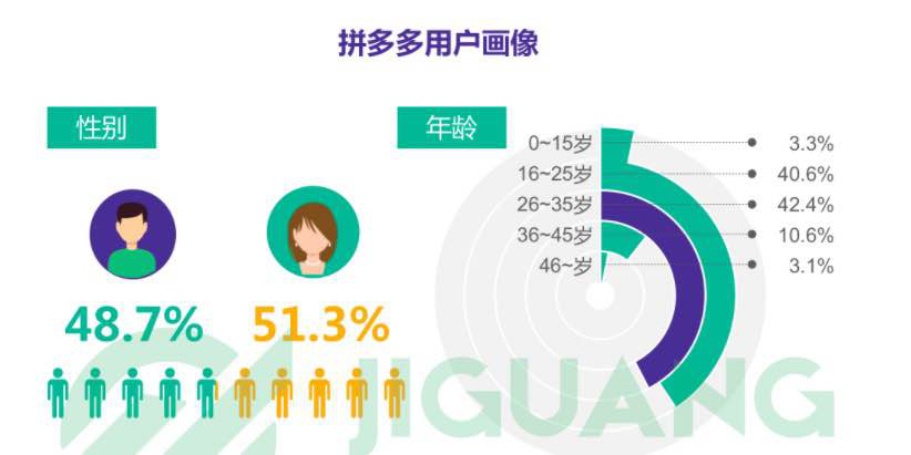 極光大數(shù)據(jù)相關(guān)報(bào)告顯示,截至2018年底,拼多多平臺(tái)16-25歲用戶占比達(dá)40.6%