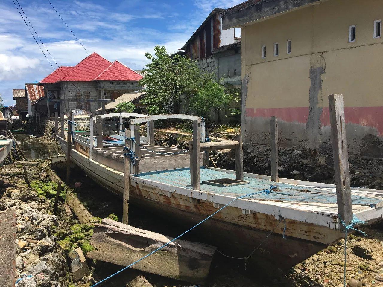 部分巴瑤族去了高地,也有部分仍然留在海邊。Bajo Mola漁村就是,這里的村民,之前住在船上,很像廣東的疍家人。后來,住進了淺灘的“水上木屋”,再后來,他們也希望現代化。在離海岸更遠的地方開始拓展,修了小樓房,他們的交通工具——狹長的獨木舟,也慢慢被摩托取代。
