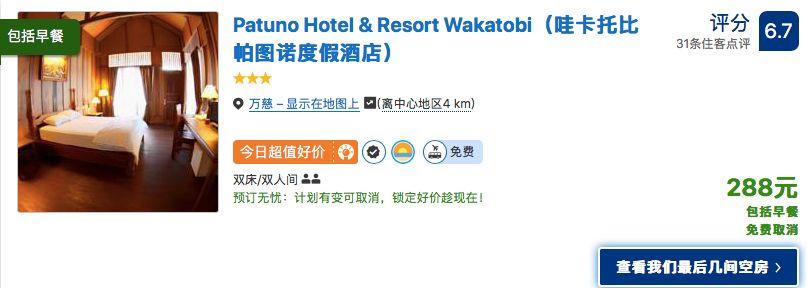 本次入住的Resort是Wangi Wangi島上的Patuno Resort,火兔在booking上尋覓了一下,一間房才288元還包早餐,會不會太便宜了點?!難怪看到好多歐美家庭,帶著娃,在這里一住就是幾星期!