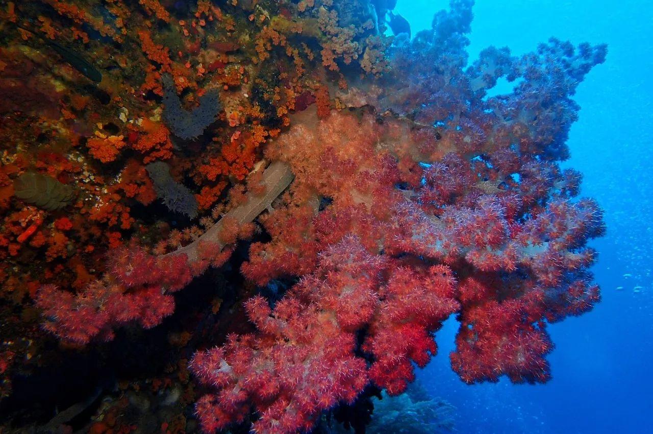 成簇的軟珊瑚色彩繽紛,是海底世界一道壯麗景觀。