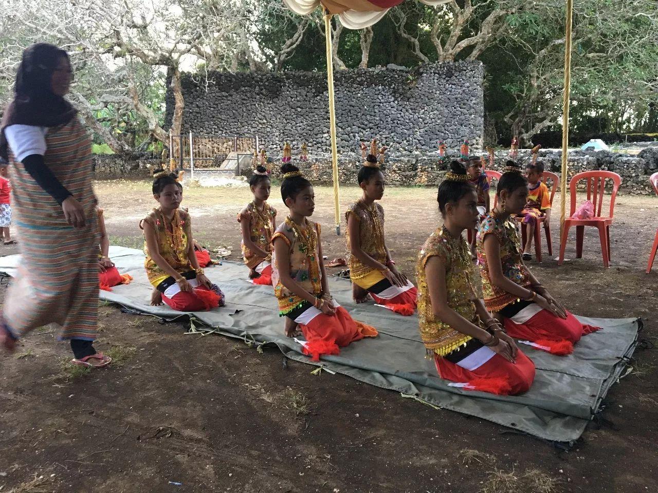 小女孩們早已盛裝打扮好,還化了妝,安靜的跪成兩豎排。原來,這個村子有種被列入非物質文化遺產的歌舞。全部由年輕女孩表演,曲調簡單,但是特別悠揚,意想不到的變調,很是驚喜。
