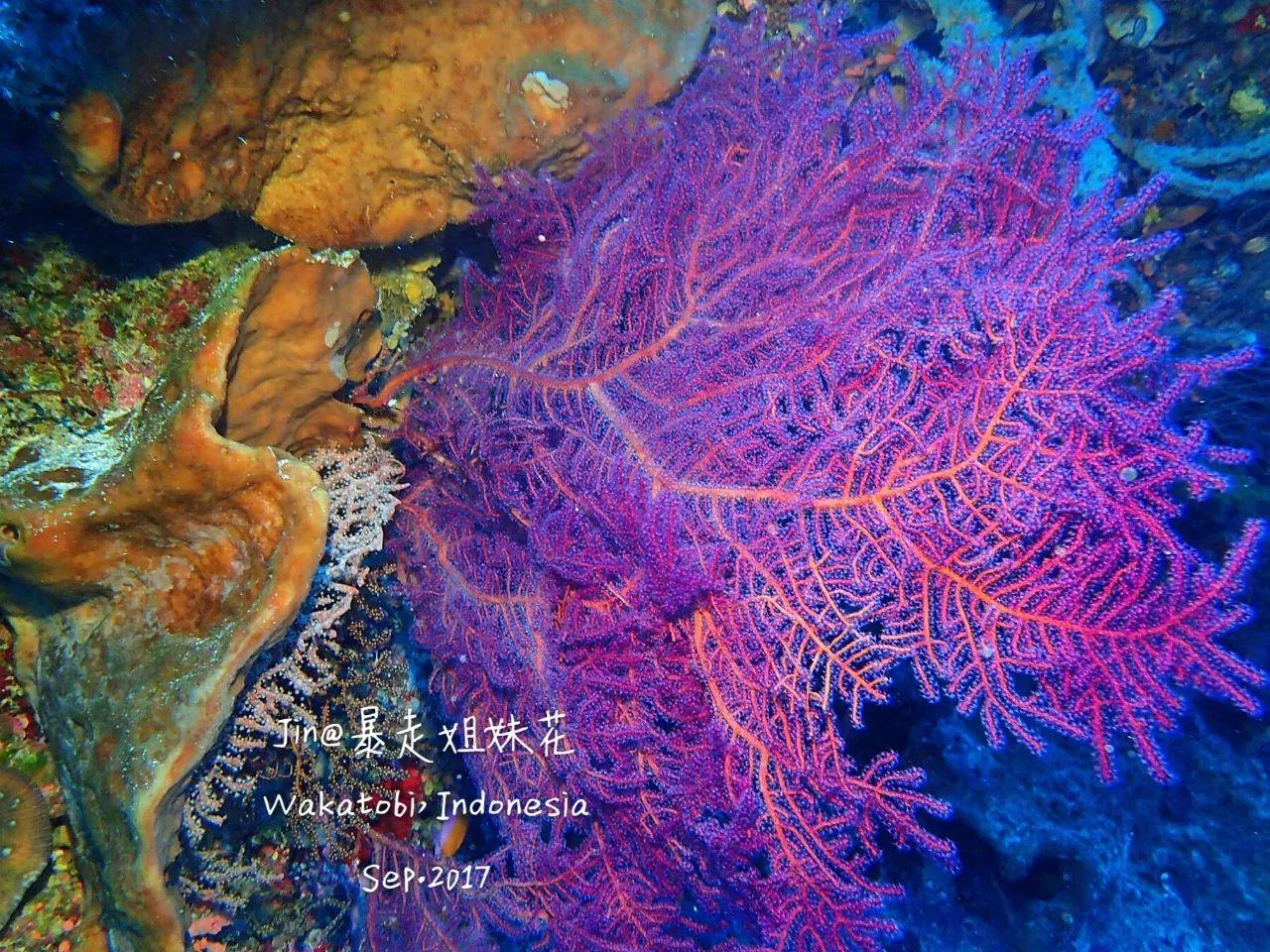 另外,顏色各異的軟珊瑚、比人還大的海綿也是一景,還有大海扇,運氣好,還可以在上面找到豆丁海馬哦!