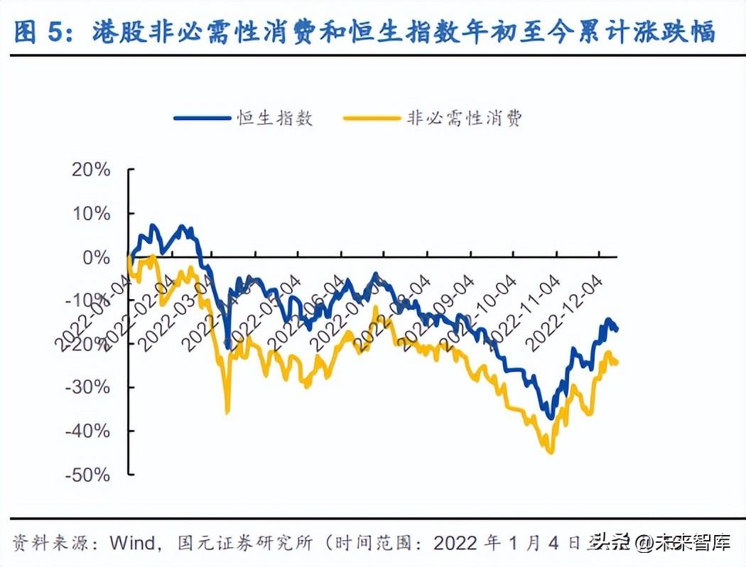 從行業(yè)累計漲跌幅來看,A 股紡服排名 12,港股非必需消費排名第 9。2022 年 1 月 4 日至 12 月 16 日,A 股方面,紡織服飾行業(yè)的累計跌幅為-12.30%,在申萬 31 個 一級行業(yè)中排名第 12 位,落后于煤炭、綜合、交通運輸、社會服務(wù)、房地產(chǎn)、商貿(mào) 零售、建筑裝飾等行業(yè)的表現(xiàn)。港股方面,非必需性消費的累計跌幅為-25.00%,在 12 個恒生綜合行業(yè)中排名第 9 位,落后于能源、電訊、綜合、金融、原材料、必須 性消費等行業(yè)的表現(xiàn)。