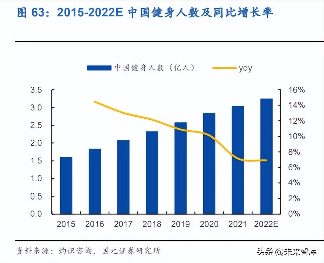 健身人群規(guī)模持續(xù)增長,新潮運動提升參與感。一方面,疫情影響下消費者健康意識 提升,居家健身的風(fēng)潮進一步拓寬運動場景、擴大運動愛好人群,提升消費者對于專 業(yè)運動鞋服的需求。根據(jù)艾瑞咨詢調(diào)研,疫情后 64.6%的受訪者健康意識增強,52.7% 的受訪者運動頻率提升。另一方面,運動不再只是為了強身健體,同時也成為人們舒 緩解壓、社交娛樂的重要方式,瑜伽、普拉提、滑板、飛盤、攀巖、越野跑等新潮運 動逐步普及,進一步延伸了運動裝備市場的范圍。根據(jù)灼識咨詢,2021 年中國健身 人數(shù)為 3.03 億人,同比增長 7.14%,預(yù)計 2022 年將達 3.24 億人。根據(jù)艾媒咨詢, 2021 年中國運動鞋服市場規(guī)模達 3858 億元,預(yù)計到 2025 年將達 5989 億元。