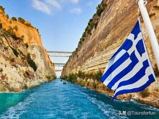 從1881 年到 1893 年建造的,共長 6.3 千米,為此建造者將科林斯地峽的窄處打通。從此塞隆尼海灣與科林斯海灣之間有了一條通道??屏炙惯\河建成前船要航行 400 千米繞過伯羅奔尼撒半島。為此建造者必須鑿入 84 米深的巖層,運河內(nèi)的水深達八米,運河水面寬 24 米,底部寬 21 米。