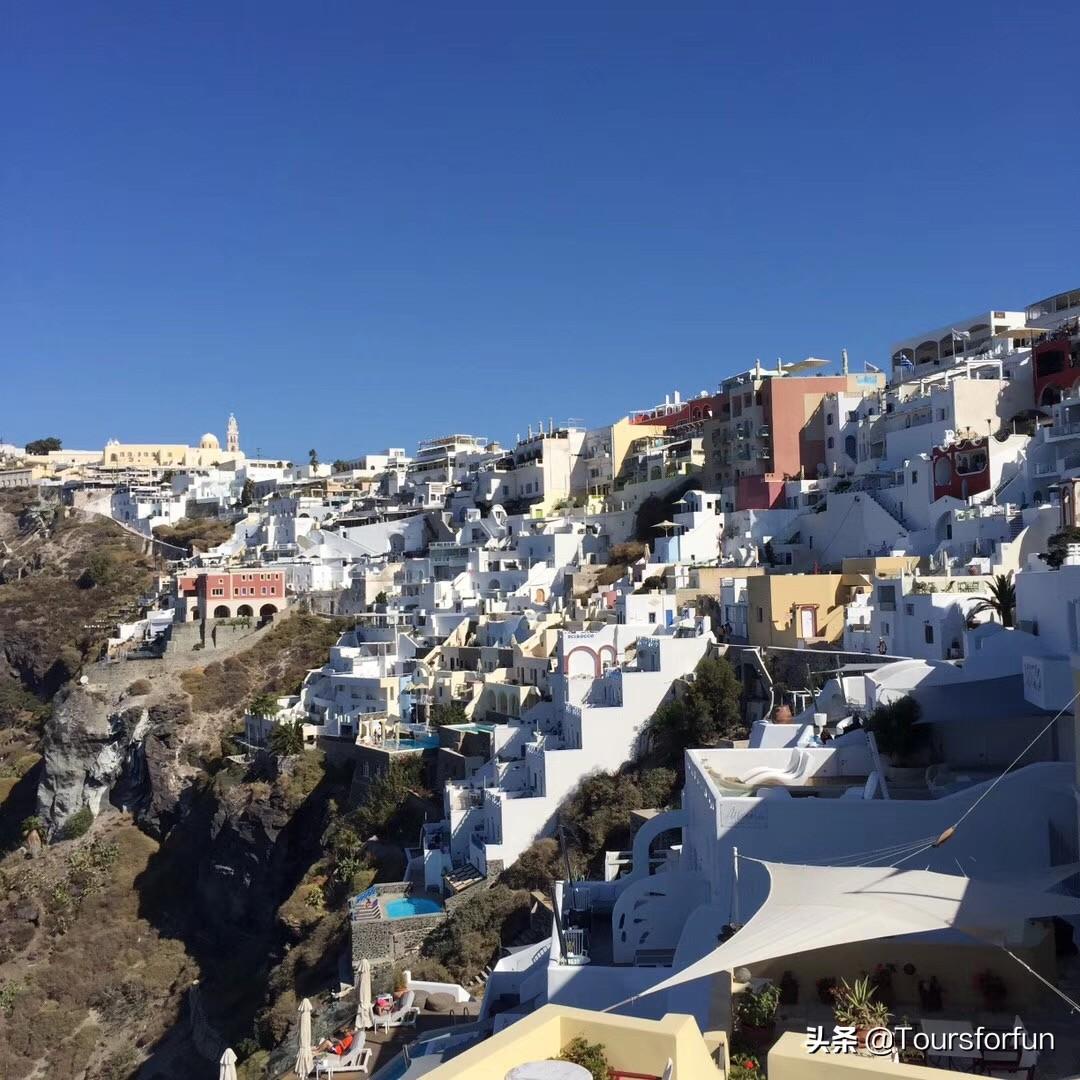 1、圣托里尼的建筑都在火山島上,有兩種方式上山:坐纜車和騎毛驢。普通游客的纜車票好像是6歐,作為海員只要1歐往返。不趕時間并且想體驗不同的游客可以選擇騎毛驢,除了有點臭以外體驗感還是的。