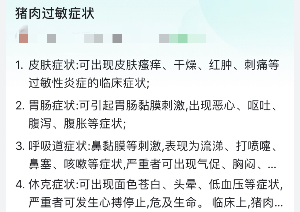 因?yàn)榇蟛糠秩藢?duì)豬肉過敏的癥狀,是皮膚瘙癢、紅腫或腸胃、呼吸道不適,沒有像李子璇這樣醉意朦朧的。