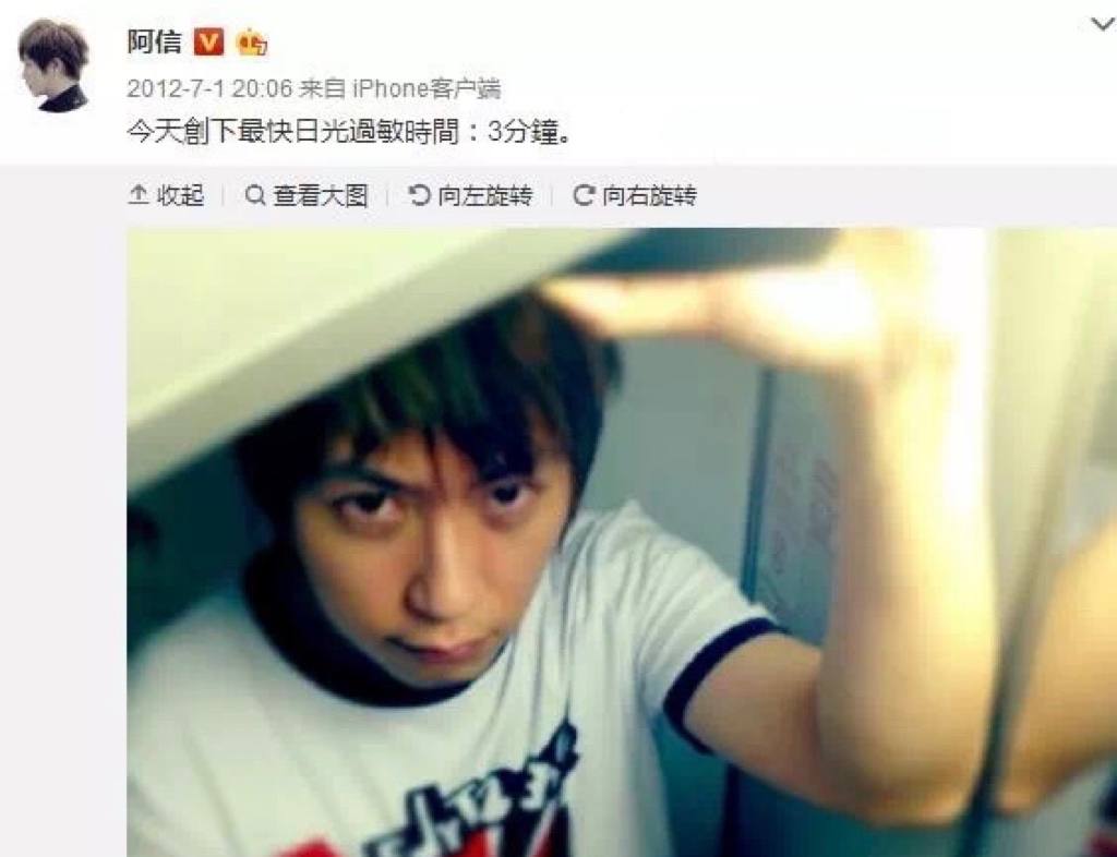 “五月天”的主唱也對(duì)紫外線過敏,有一次甚至只曬了3分鐘就面部嚴(yán)重泛紅、皮膚瘙癢。