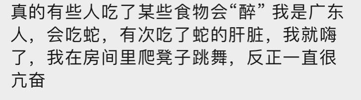 但也有網(wǎng)友反駁稱,自己吃其他食物也會(huì)出現(xiàn)仿佛醉酒的嗨勁兒......