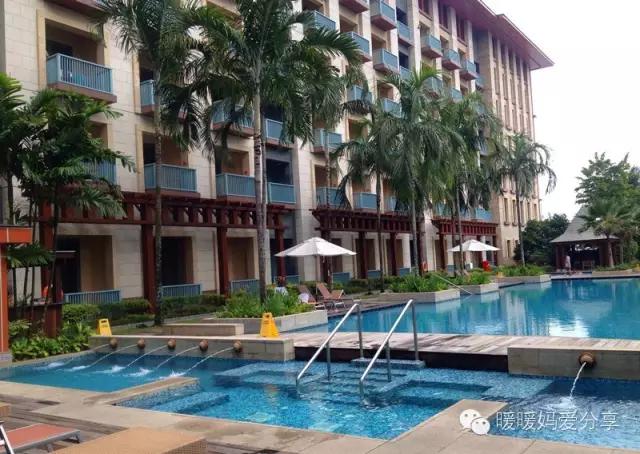 圣淘沙島是新加坡有名的綜合娛樂度假村,又以其中的名勝世界為有名。環(huán)球影城、水上樂園、海洋世界等都在這里。名勝世界有三家并排在一起的酒店,分別是硬石酒店(Hard Rock Hotel)、節(jié)慶酒店(FestiveHotel)、邁克爾酒店(Micheal Hotel)。2014年去的時候住在硬石酒店,有很棒的游泳池和人造沙灘,但整個酒店的裝修都是搖滾風格的,到處掛著搖滾歌星的照片,小寶寶會覺得有點嚇人。所以這次選擇了節(jié)慶酒店,大堂和房間里的裝修風格都很鮮艷漂亮。我們訂了家庭房,就是有個小里外間,外間有個高高的二層兒童床,適合3歲以上的寶寶,暖暖喜歡。價格大概每晚1000元出頭,普通房型大概900元左右。帶小朋友入住會送兒童的拖鞋牙刷小玩具等。