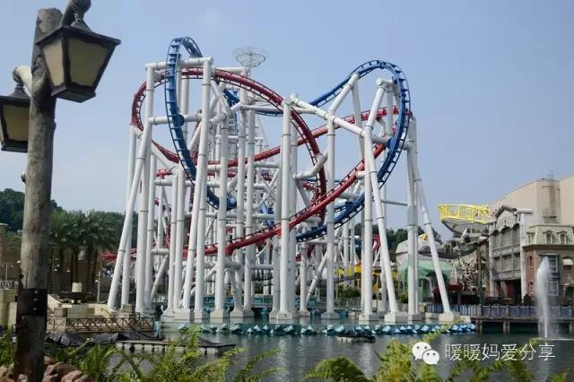 大人玩的話,古埃及區(qū)域的木乃伊復仇記,科幻城市區(qū)域的變形金剛、太空堡壘卡拉狄加過山車(就是的世界上高的紅藍雙軌過山車),失落世界里的侏羅紀河流探險(會濺濕,好自備雨衣涼鞋)都比較有意思。暖媽這種怕高的軟柿子,這次居然一次性把紅藍雙軌過山車挨個坐了一遍。比較下藍色的更加嚇人,軌道也更長。