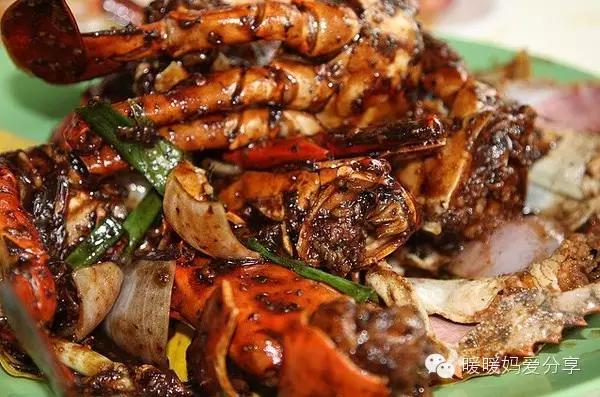 Kelong餐廳有名的是野生龍蝦,每天數(shù)量不定的,捕到幾只就幾只。我們沒吃(因為我嫌貴),點了黑胡椒螃蟹、石斑魚、貢貢(一種當?shù)氐暮B荩?、海鮮炒飯和空心菜。不得不說,這里的黑胡椒螃蟹是我吃過好吃也新鮮的,現(xiàn)在想想都覺得流口水。石斑魚我要了兩條小的,一條給暖暖做港式蒸,一條做了我愛的娘惹蒸。各種海鮮都很新鮮又好吃,價格跟酒店的比起來也真心不算貴,十分推薦。