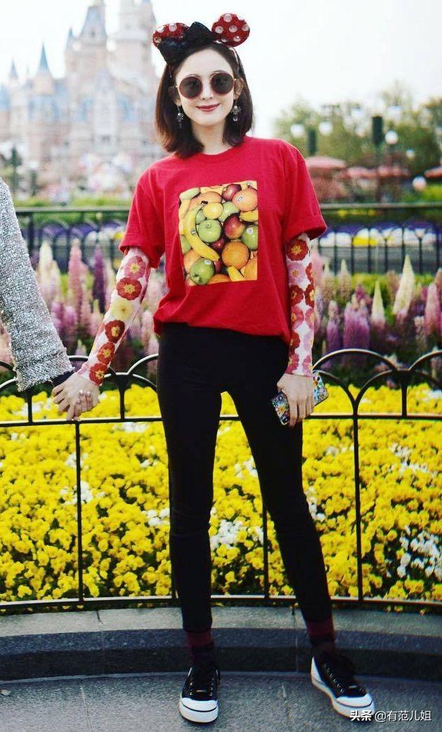 楊冪不愧是帶貨女王,前陣子她的小飛象T恤搭配粉色防曬衣就登上了熱搜,而這件防曬衣看單看有點(diǎn)花俏難看,但是作為內(nèi)搭就會(huì)顯得很有時(shí)尚感了。搭配小黑褲,又簡(jiǎn)單又帥氣。
