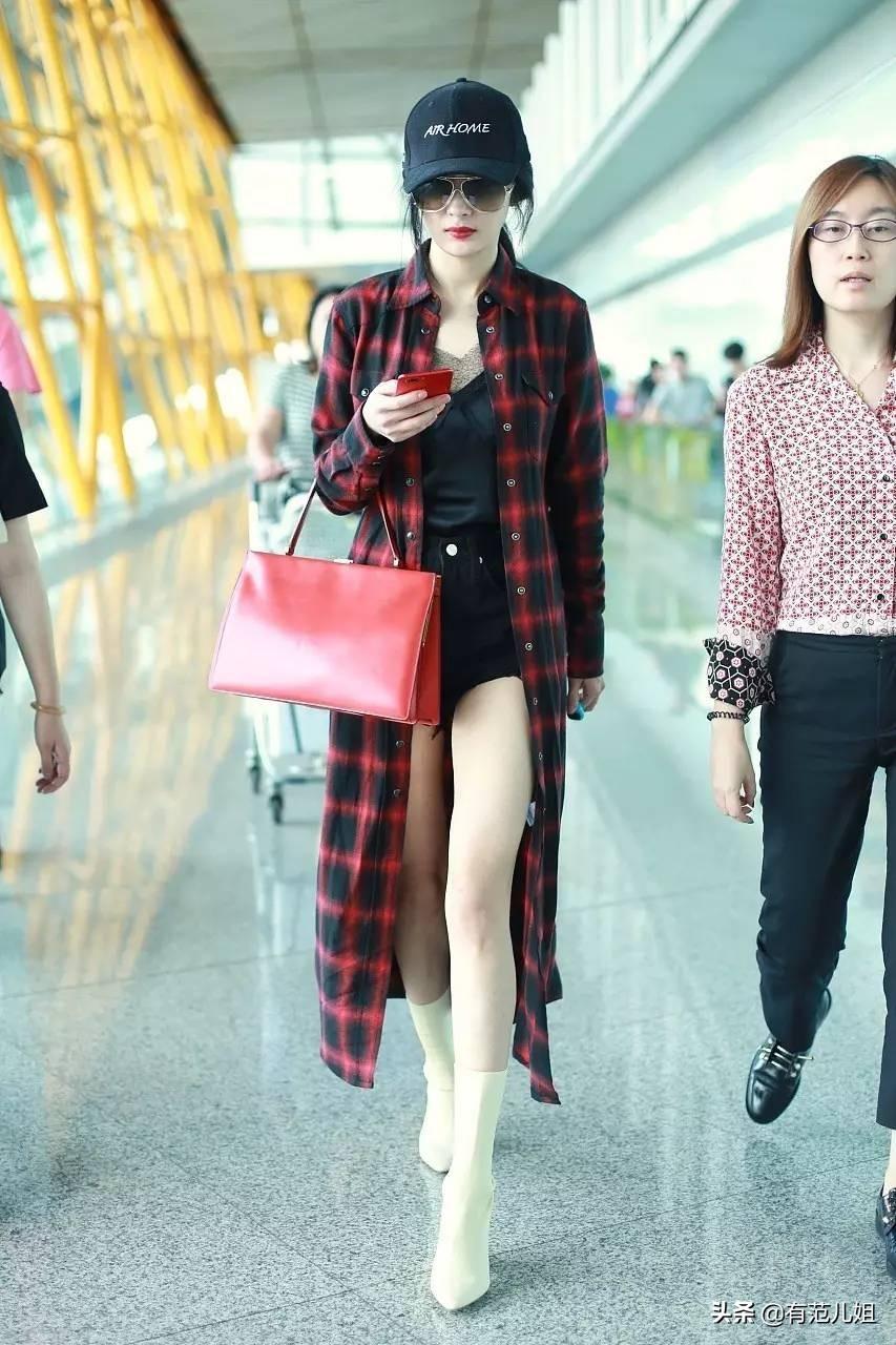 也可以像楊冪一樣選擇一件超長(zhǎng)款的格子襯衫,內(nèi)搭黑色的小吊帶,加上一個(gè)黑色的超短褲,顯得腿長(zhǎng)又細(xì),而從上到下的長(zhǎng)款襯衫又能夠?qū)⒄麄€(gè)人都包裹起來(lái),基本上都能夠?qū)⒄麄€(gè)身體都防曬到位了。
