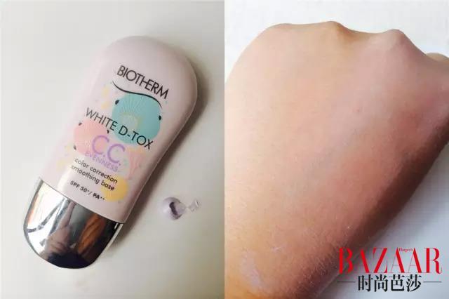 產(chǎn)品上雖然沒有標(biāo)注防曬值,但它其實是具有基本的防曬功能的。粉色乳液質(zhì)地里面有微囊小球,推開就會變成粉底色,一下就能提亮膚色,而且肌膚超干爽,應(yīng)該是90后的菜。