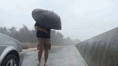 即使帶了傘,風(fēng)卻總跟雨相伴,即使撐傘,也沒(méi)有任何用,一不小心甚至連人帶傘掀翻。