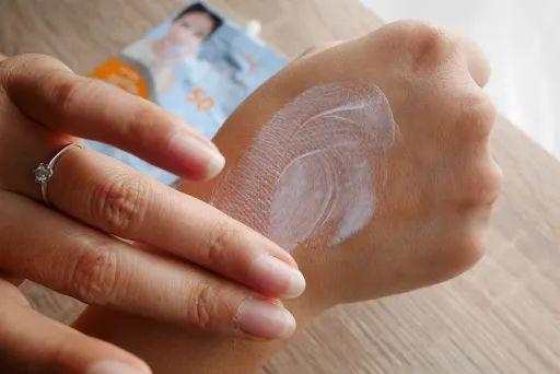 空氣奶霜質(zhì)地,不油膩不悶痘 輕薄,推開后絲滑服帖,吸收很快,成膜后跟肌膚融為一體。這款就是典型的物化結(jié)合的防曬,既做到了化學(xué)防曬的膚感輕薄,又具備物理防曬的溫和不刺激▼