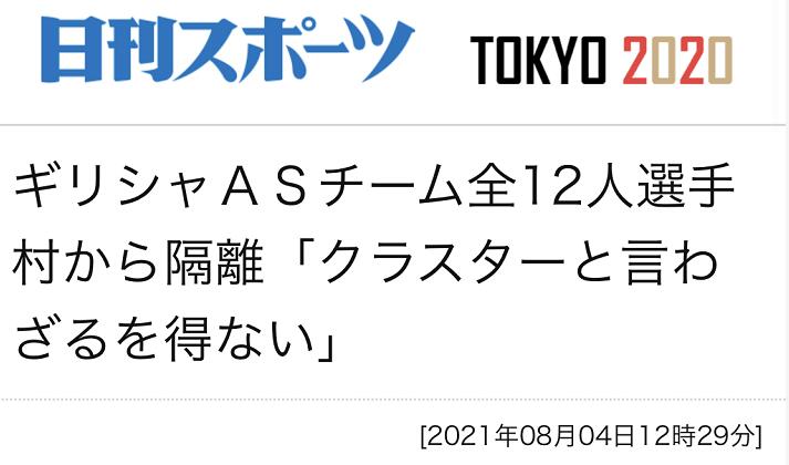 《日刊體育》稱, 1名希臘代表團花樣游泳隊工作人員7月30日被查出新冠病毒檢測結(jié)果呈陽性,隨后該隊伍的4名運動員在8月2日與8月3日先后被查出檢測結(jié)果呈陽性。